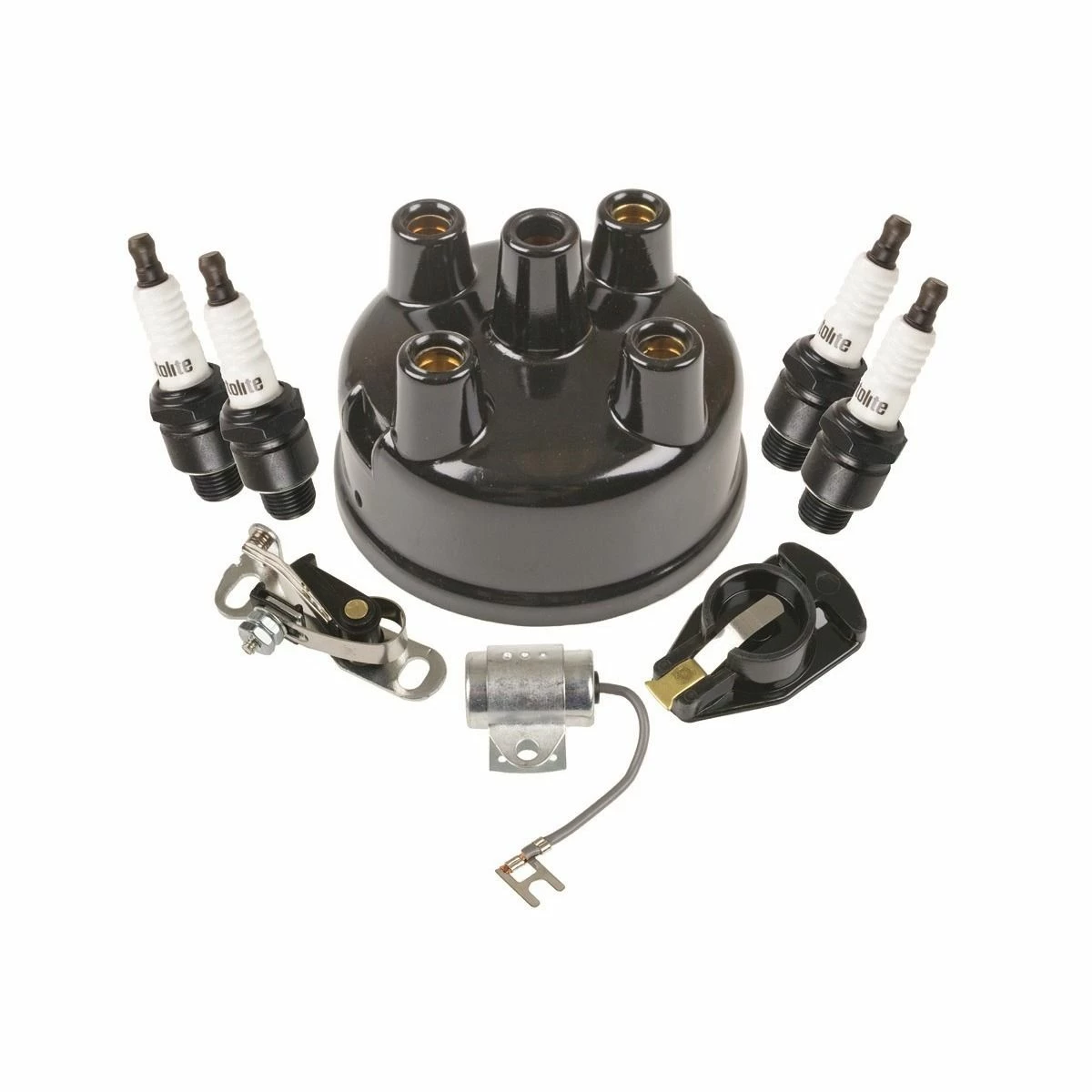 - Rotor, Distributor Cap, Spark Plugs, Condenser and Points