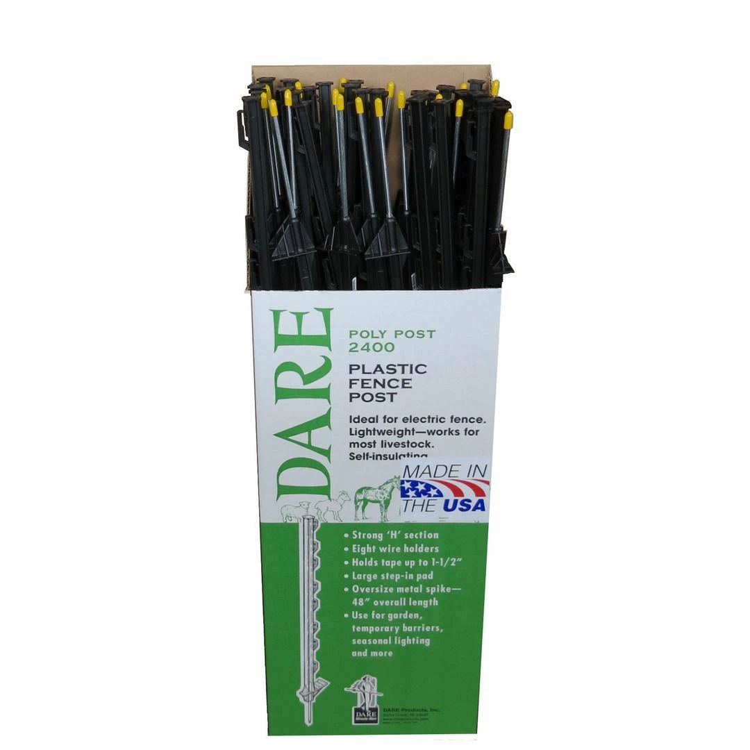 - Eight wire holders for steel wire, poly wire, and polytape up to 1 1/2″ wide. Spaced 6″ to 37″ from ground up.